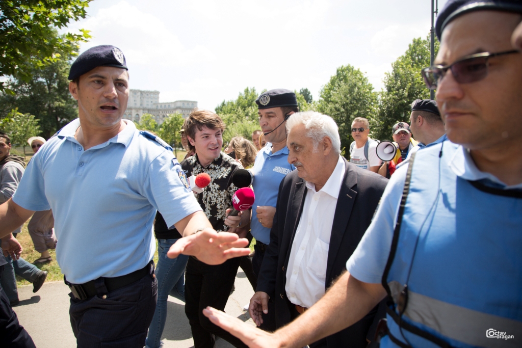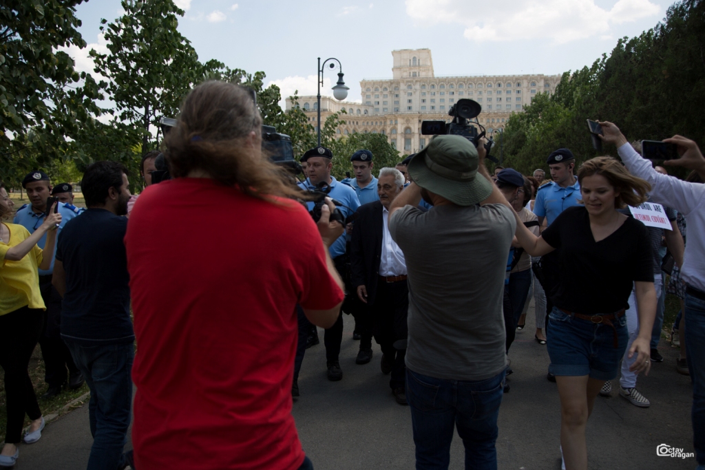 În acest timp, deputatul PSD Nicolae Bacalbașa, care se îndrepta spre staţia de metrou, a fost înconjurat de câţiva protestatari şi urmărit până ce acesta a ajuns la gura de intrare a metroului.