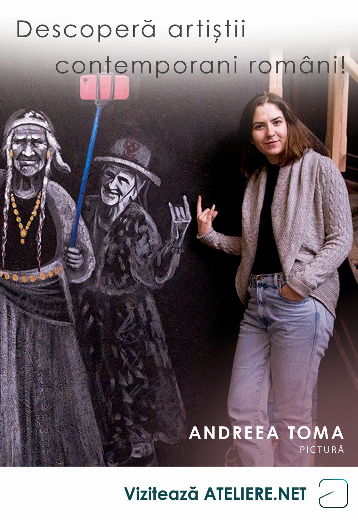 ”Sunt o tânără care se aventurează în lumea artei, proaspăt absolventă a Facultății de Arte București, Secția Pictură. Am mai multe participari la evenimente și festivaluri, expoziții de grup și personale, plus o galerie – Celula de Artă – ce o administrez împreună cu 2 prieteni. În viața de zi cu zi sunt web designer pentru o firmă și artist în atelierul meu”, își rezumă activitatea Andreea Toma .