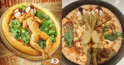 Printre cele mai șocante variante se numără „pizza goblin” de la Pizza Hut, care vine cu un ingredient neașteptat: o broască întreagă. Chiar și un francez obișnuit cu delicatese neconvenționale a refuzat să o încerce.