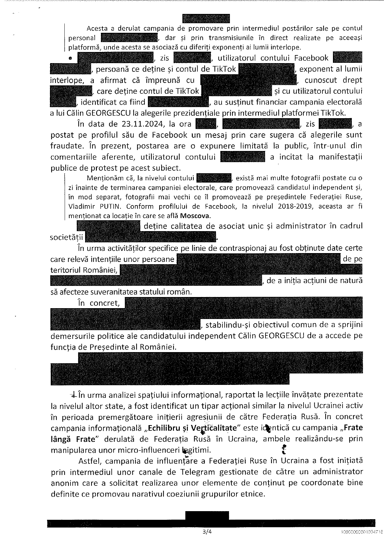 Crescut artificial cu ajutorul unor conturi pe TikTok extremiste și pro-ruse și împotriva tuturor sondajelor – așa a ajuns Călin Georgescu lider în urma alegerilor, arată documente desecretizate de autorități. Clasat cu 1% în previziuni la începutul lunii noiembrie, a fost ajutat cu zeci de mii de conturi pe TikTok să câștige primul tur al alegerilor prezidențiale. Acțiunile în mediul online, începând cu 13 noiembrie și până la 26 noiembrie, au ajuns pe locul 9 la nivel mondial în clasamentul tendințelor de promovare a conținutului video. Datele apar în documentele-raport, desecretizate, de la Serviciul Român de Informații și Direcția de Protecție Internă a Ministerului de Interne. Iorgu Ianuși, despre câteva informări din aceste documente.