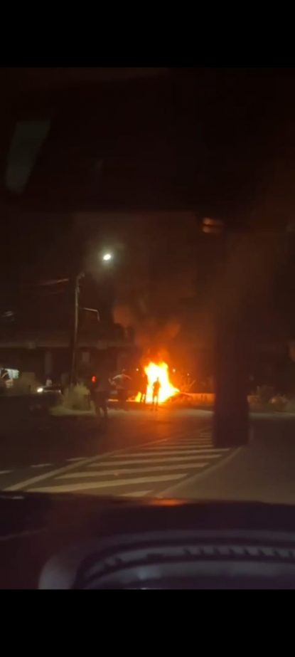După câțiva kilometri, mașina a lovit o țeavă de termoficare, iar la impact a luat foc.