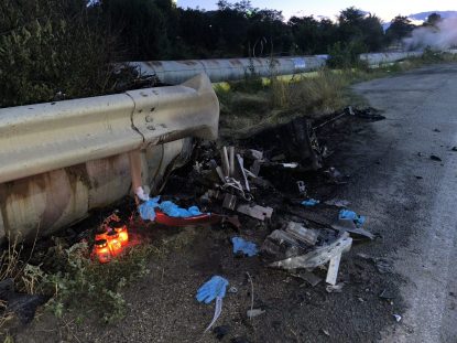 Doi tineri din Râmnicu Vâlcea, 23 și 24 de ani, au murit carbonizați într-o mașină urmărită de poliție: goneau cu 185 de km pe oră