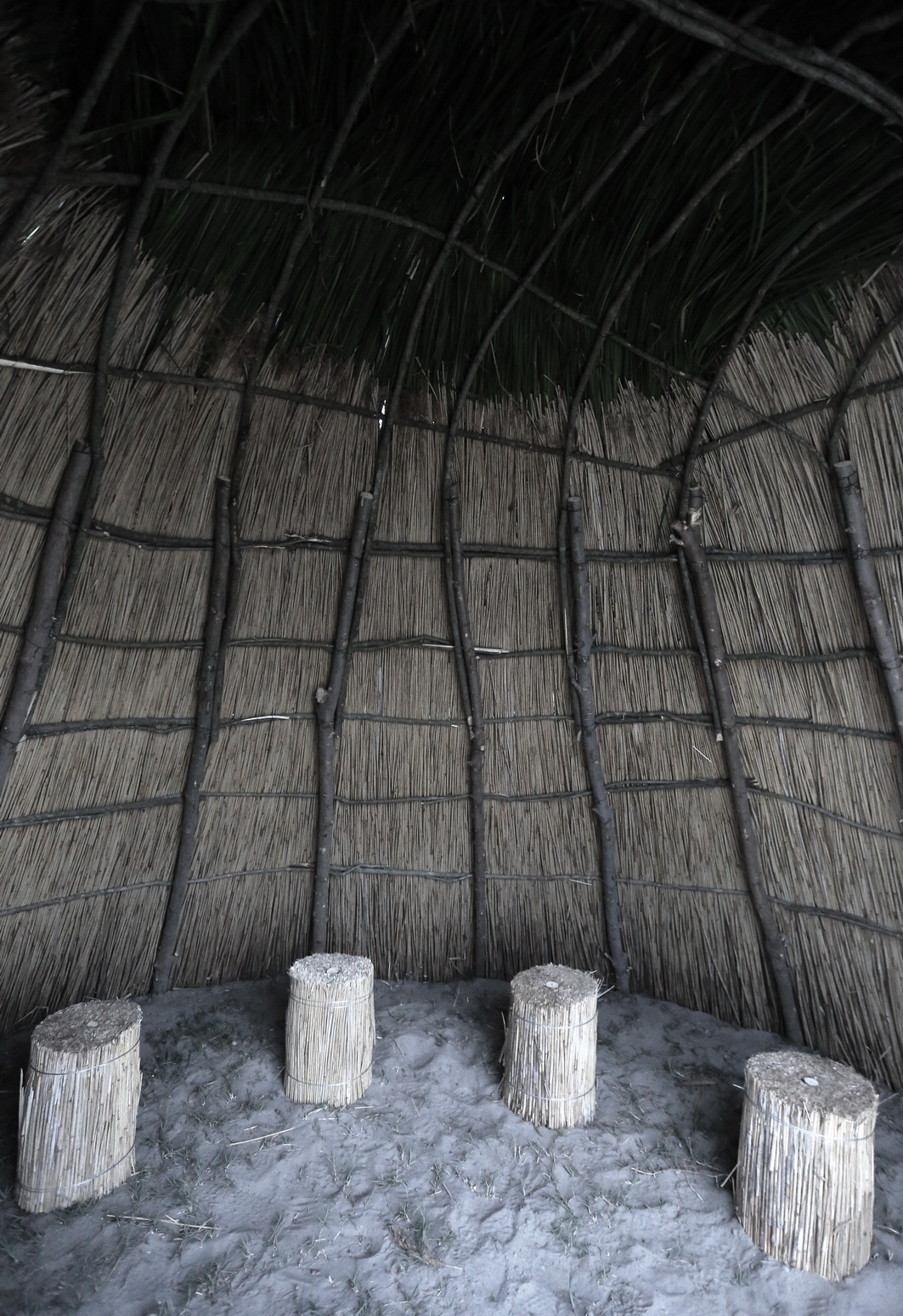 Adăposturile au fost construite utilizând doar materiale specifice locului: lemn de salcâm, nuiele din răchită, stuf și papură.