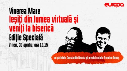 Europa FM vă invită, în Vinerea Mare, la o ediție specială, moderată de Cătălin Striblea. Invitați sunt părintele Constantin Necula și preotul catolic Francisc Doboș.