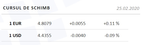 Cursul de schimb al monedei naţionale a atins cel mai ridicat nivel din istorie în raport cu moneda euro.