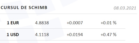 Pe piața valutară, euro era cotat, la ora transmiterii știrii, între 4,8834 și 4,8847 lei.