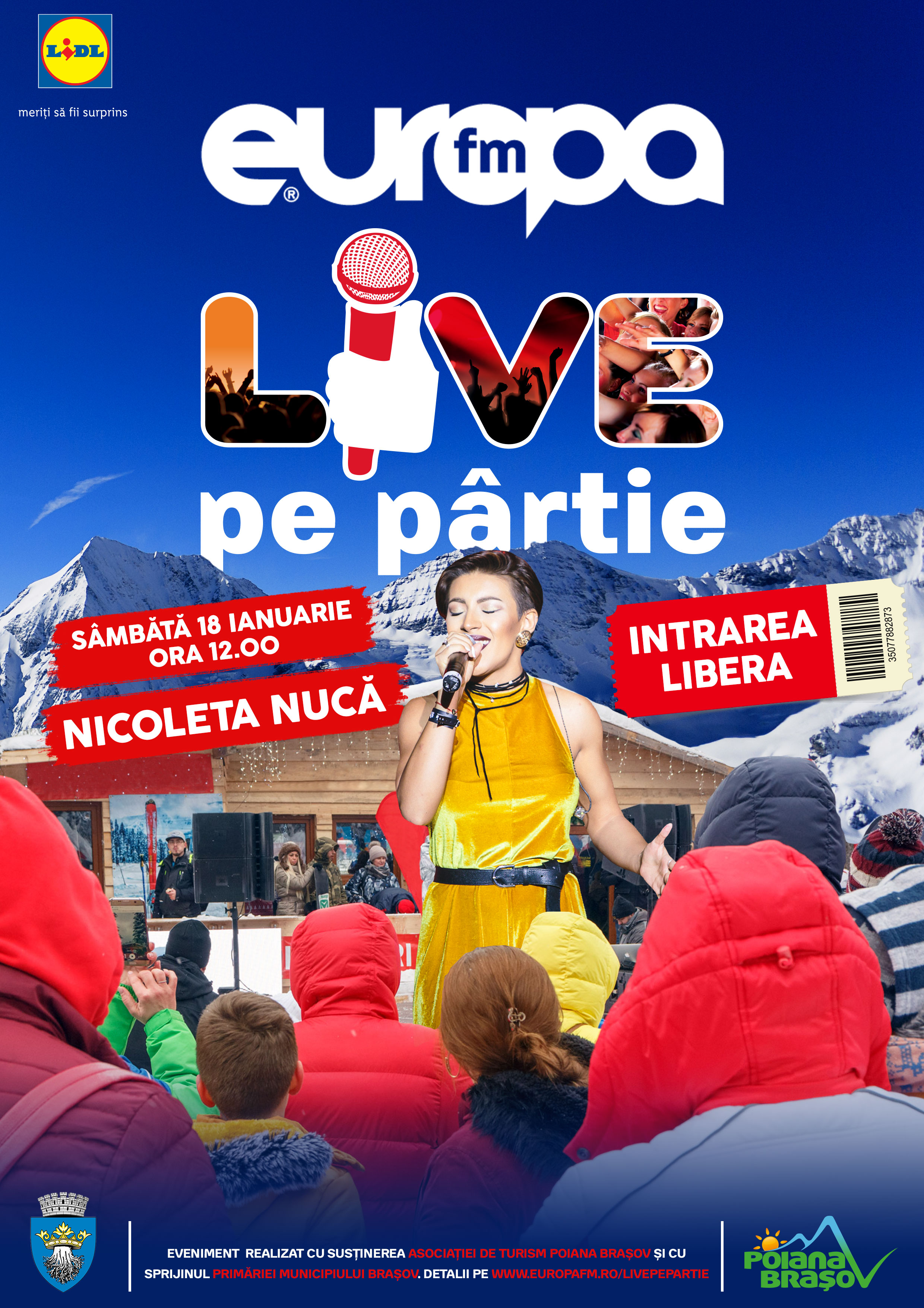 Nicoleta Nucă vine sâmbătă #livepepârtie în Poiana Brașov, pentru un nou eveniment din seria Europa FM Live pe Pârtie. De la ora 12, sâmbătă, Nicoleta Nucă va aduce pe pârtia Bradul hiturile care i-au înscris numele în topuri în ultimii ani, dar și cel mai nou single, ”Tot mai rar”.