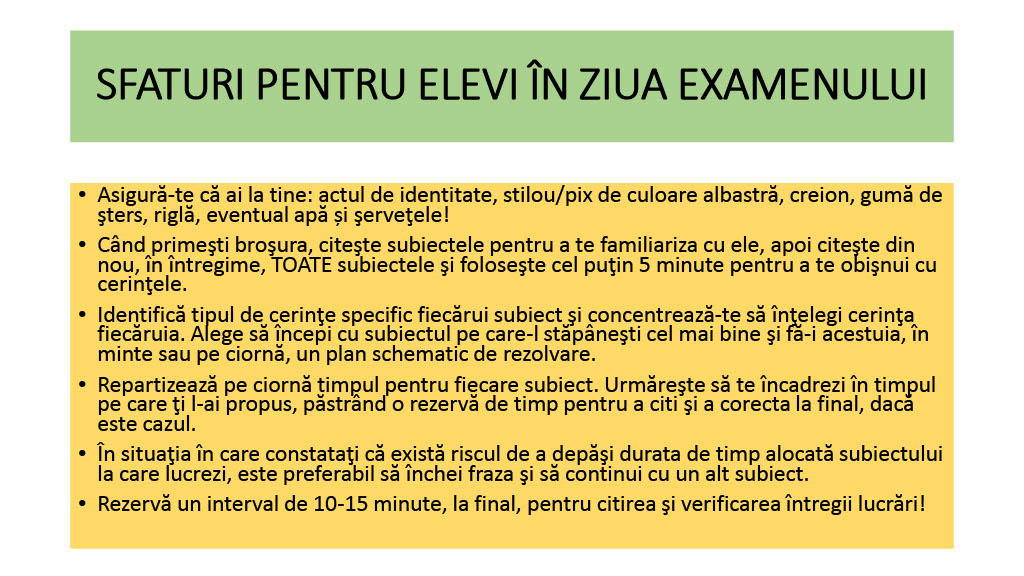 A doua probă scrisă (Matematică) va avea loc miercuri, 21 iunie, urmată joi, 22 iunie, de ultima probă scrisă (Limba și literatura maternă).