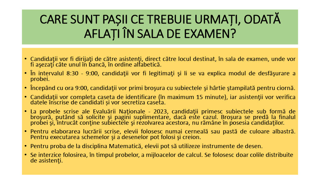 Informații utile privind desfășurarea Evaluării Naționale 2023 pentru absolvenții clasei a VIII-a
