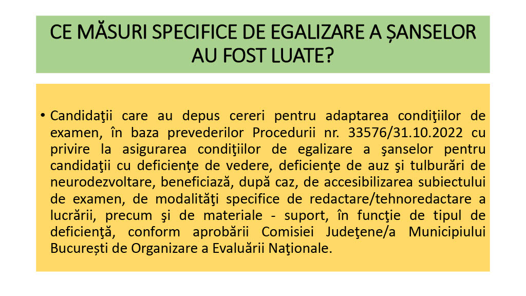 - Elevi eliminați din cauza tentativei de fraudă: Doi elevi. Lucrările au fost notate cu 1.