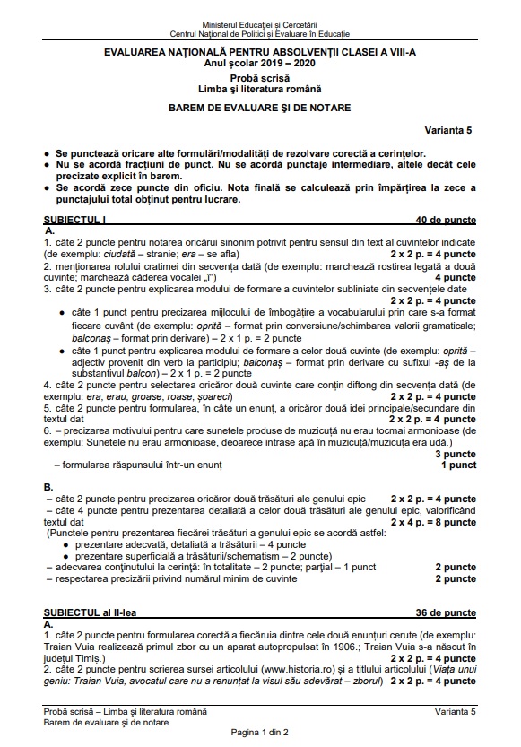 Evaluarea Națională 2020. Baremul la Limba Română a fost publicat