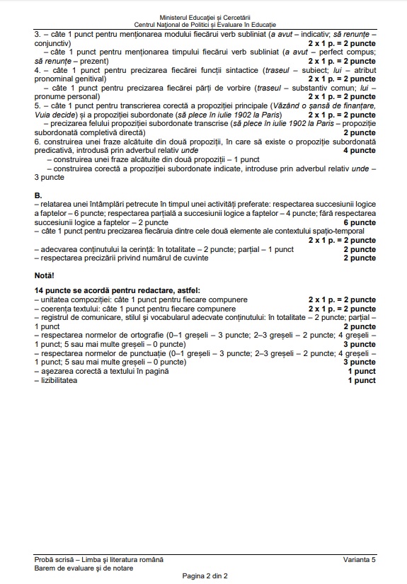 La Subiectul II B, absolvenții școlilor gimnaziale au avut de scris o narațiune de 150-300 de cuvinte în care să prezinte o întâmplare petrecută în timpul unei activități preferate.