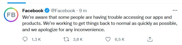 Într-un mesaj pe Twitter, reprezentanții Facebook spun că știu de problemă și lucrează la rezolvarea ei, fără a oferi și alte detalii.