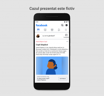 Dacă un copil dispare, Facebook va distribui o alertă AMBER persoanelor din zonele în care acesta a fost văzut ultima dată. Alertele vor include informații detaliate și o fotografie a copilului.