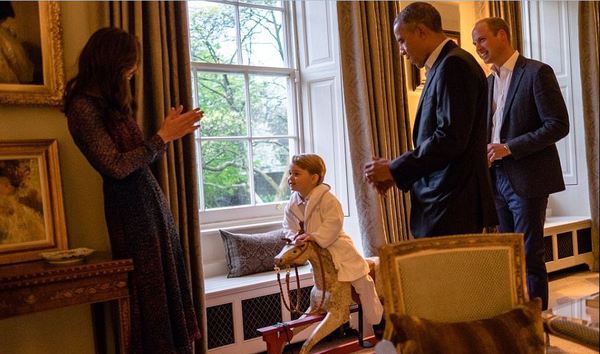 Întâlnirea Prinţului George cu Barack Obama şi a soţia acestuia, Michelle