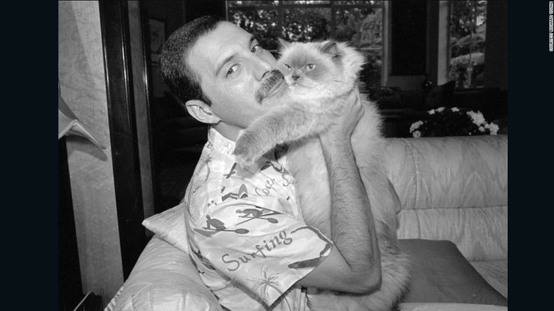 Freddie Mercury, alături de pisica lui, Tiffany, în 1988