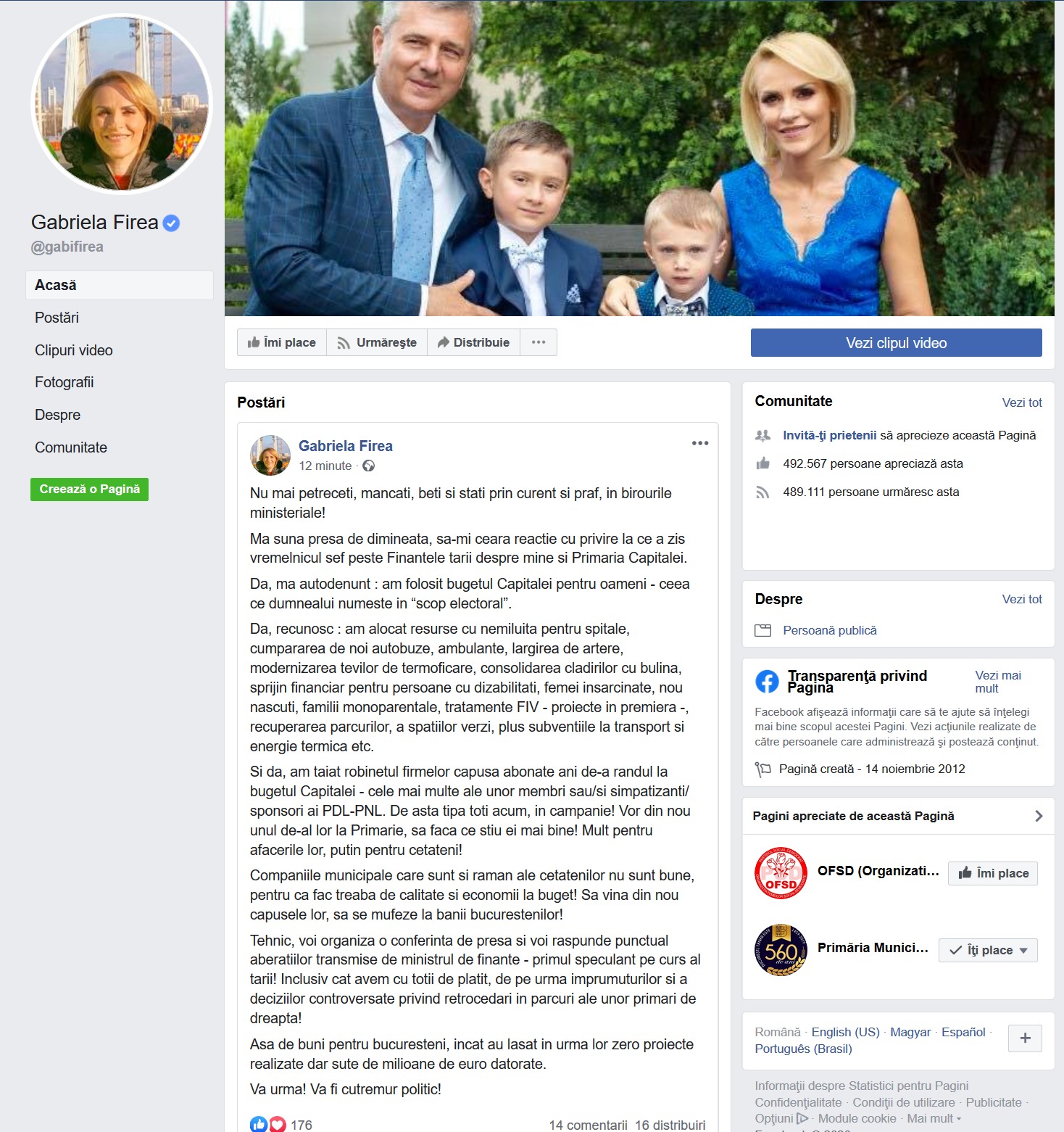 Prin intermediul unui mesaj postat pe Facebook sâmbătă dimineața, Gabriela Firea reacționează la acuzațiile care i-au fost aduse de Ministrul de Finanțe, Florin Cîțu.