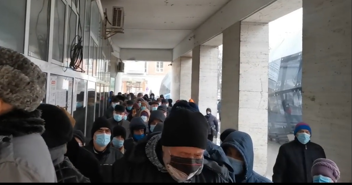 Oamenii s-au așezat la coadă fără să respecte măsurile de distanțare, mulți și fără măști de protecție.