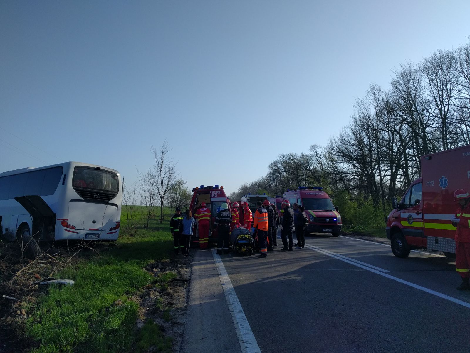 Au fost alertate si trimise spre locul accidentului o descarcerare, o autospeciala de stingere, 3 echipaje de prim ajutor SMURD, 5 echipaje medicale SAJ si 2 autospeciale pentru victime multiple.