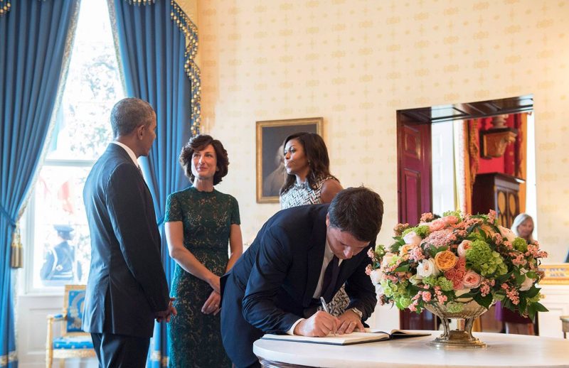 Gwen Stefani şi copiii ei au pozat pe peluza de la Casa Albă alături de cei doi şefi de state şi de soţiile lor.