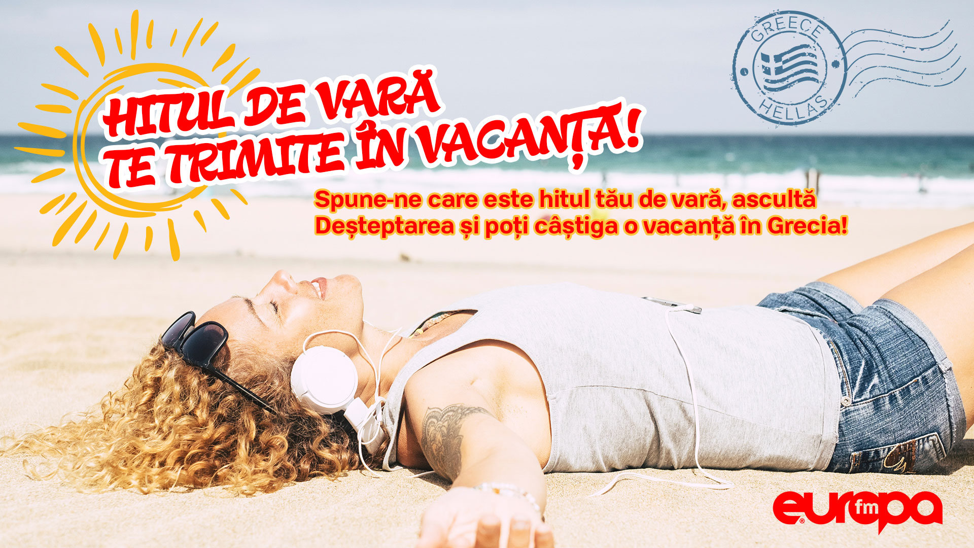 Scrie-ne, de luni până vineri, care este melodia care îți face poftă de vacanță şi poţi câştiga o vacanţă pentru 2 persoane, 5 nopți, în Grecia, la un hotel de 5*, cu mic dejun inclus!