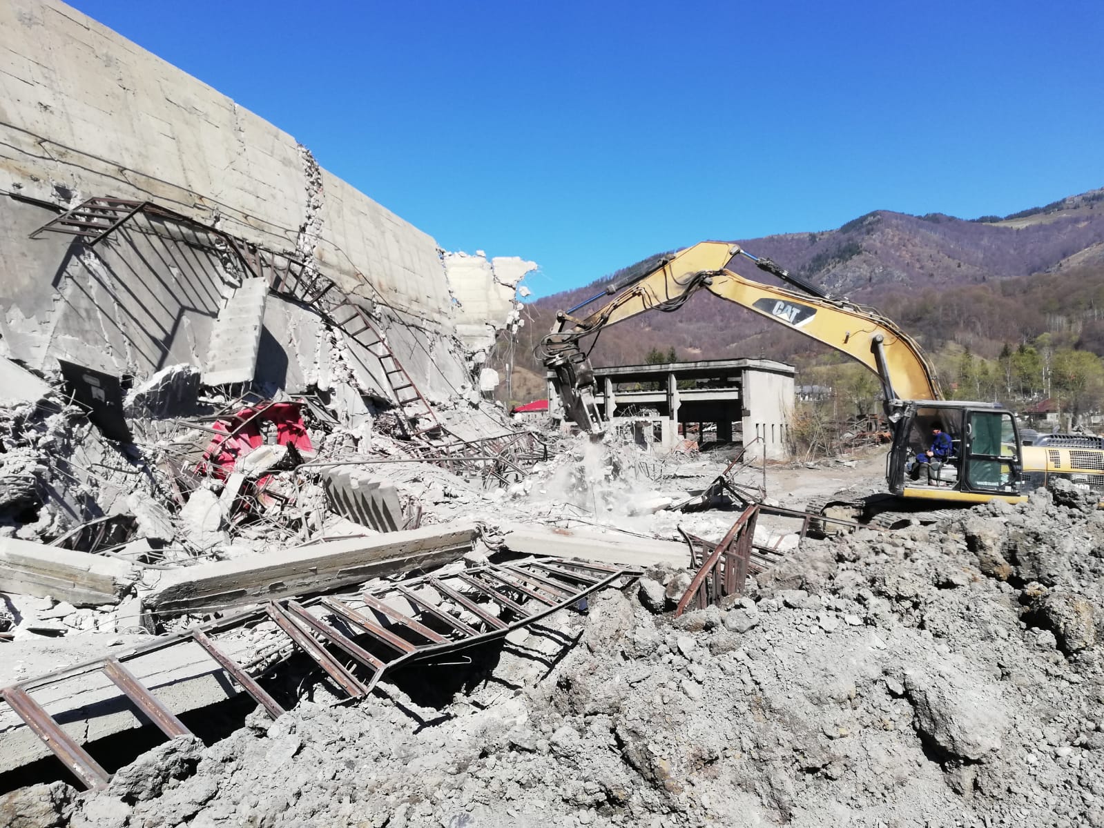 Concomitent, cu buldozere şi excavatoare aflate in dotarea Exploatării miniere şi a Primăriei Uricani sunt efectuate acţiuni de îndepărtare a materialelor de construcţie.