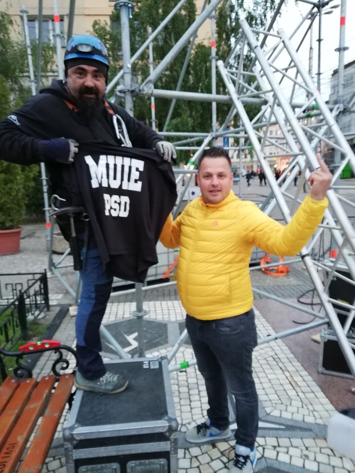 Iaşi: Un muncitor care a instalat scena pentru mitingul PSD purta un tricou cu mesaj ofensator
