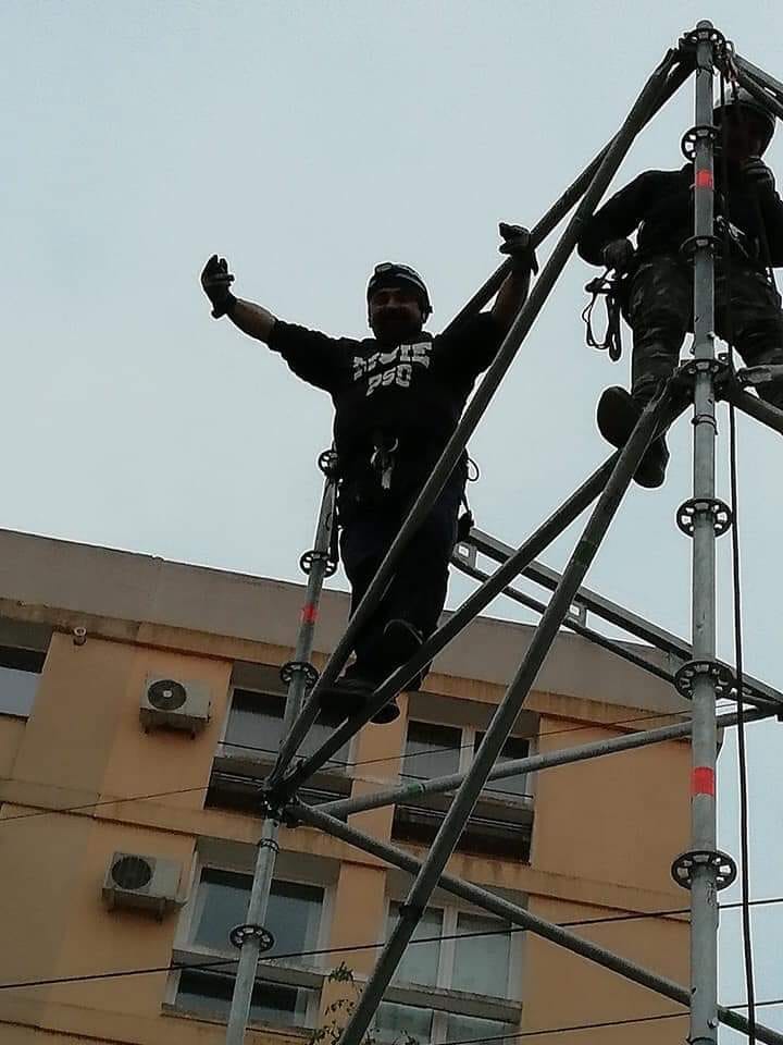 Pe mai multe pagini de Facebook au fost publicate fotografii cu un muncitor care lucrează la scena pregătită pentru mitingul PSD.