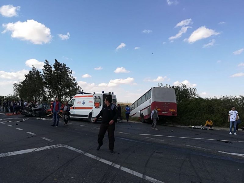 ACTUALIZARE 14.29: Trei persoane au murit, una este în comă, iar alte şase – şapte persoane sunt cu politraumatisme, au transmis, joi, reprezentanţii Serviciului Judeţean de Ambulanţă Constanţa. În continuare traficul în zonă este complet blocat.