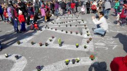 Zeci de copii cu vârste între 1 și 10 ani care se joacă, socializează și desenează cu cretă pe asfalt, se află în Piața Victoriei. Printre mesajele scrise, cel mai probabil cu ajutorul părinților: Rezist sau Jos Corupția!