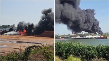 Incendiu lângă fabrica de ciment Medgidia. A fost emis un mesaj Ro-Alert din cauza degajărilor mari de fum | VIDEO
