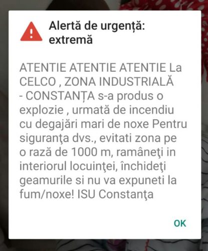 ISU Dobrogea a transmis un mesaj de avertizare, în urma incendiului.