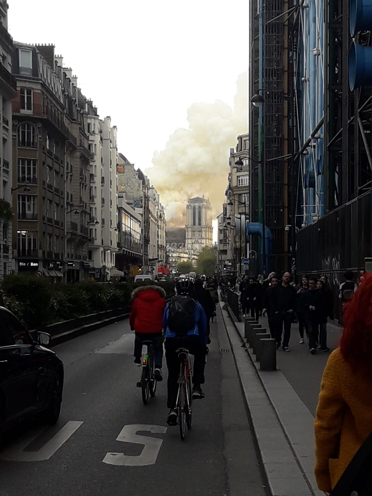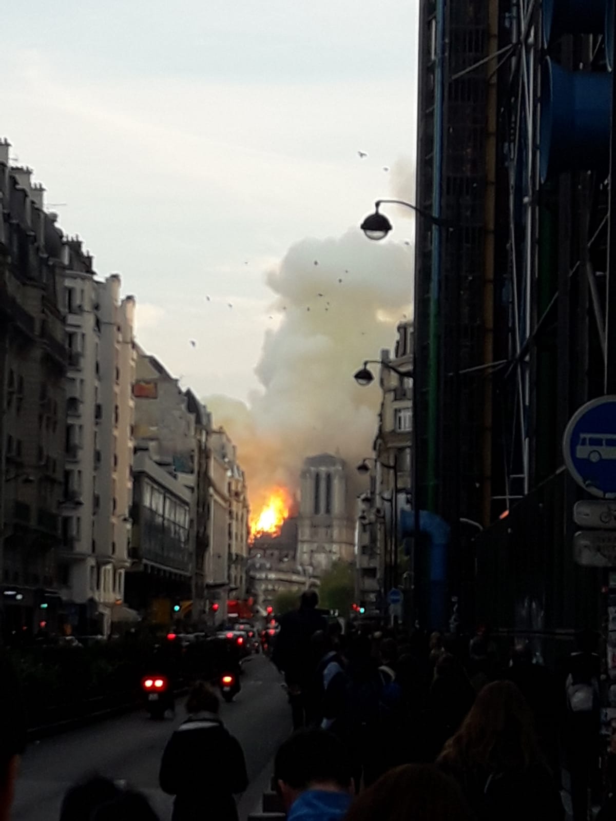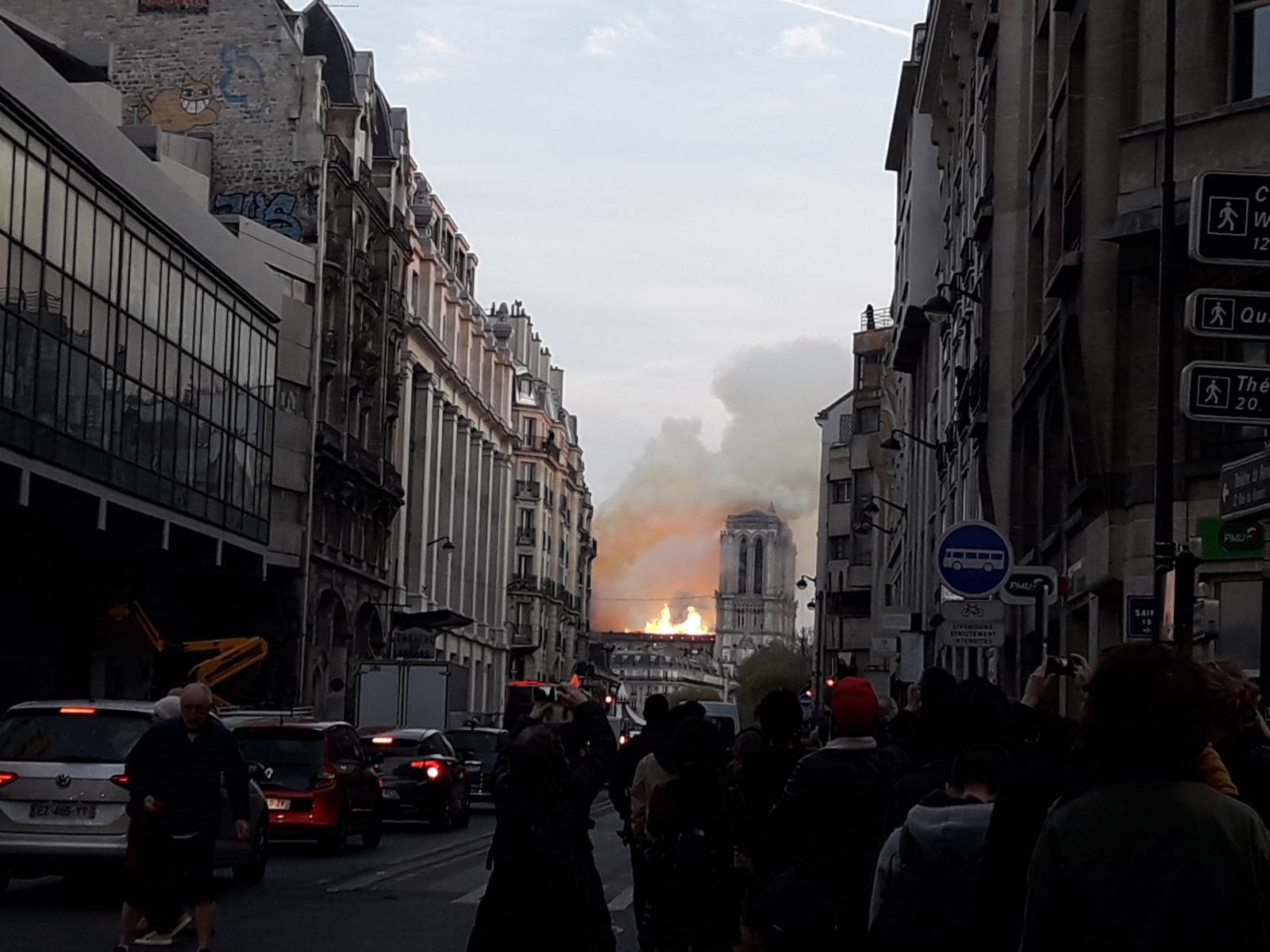 Momentul prăbușirii turnului Catedralei Notre Dame din Paris
