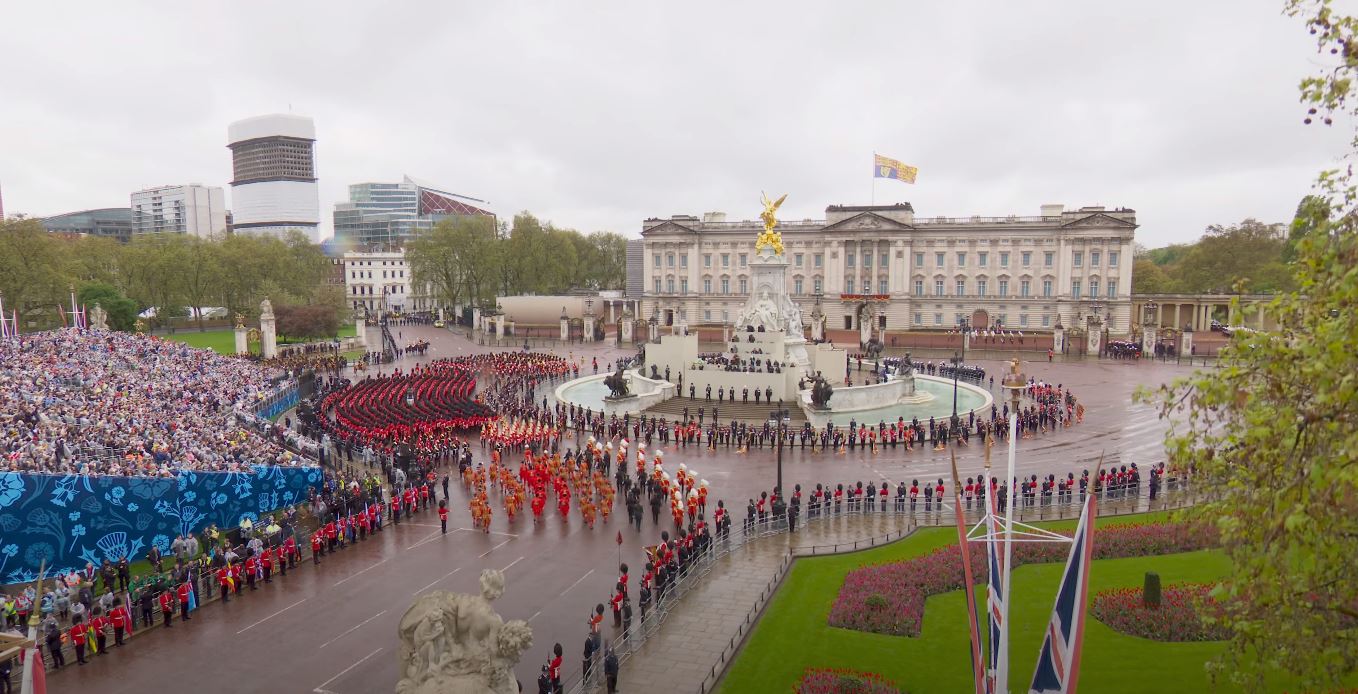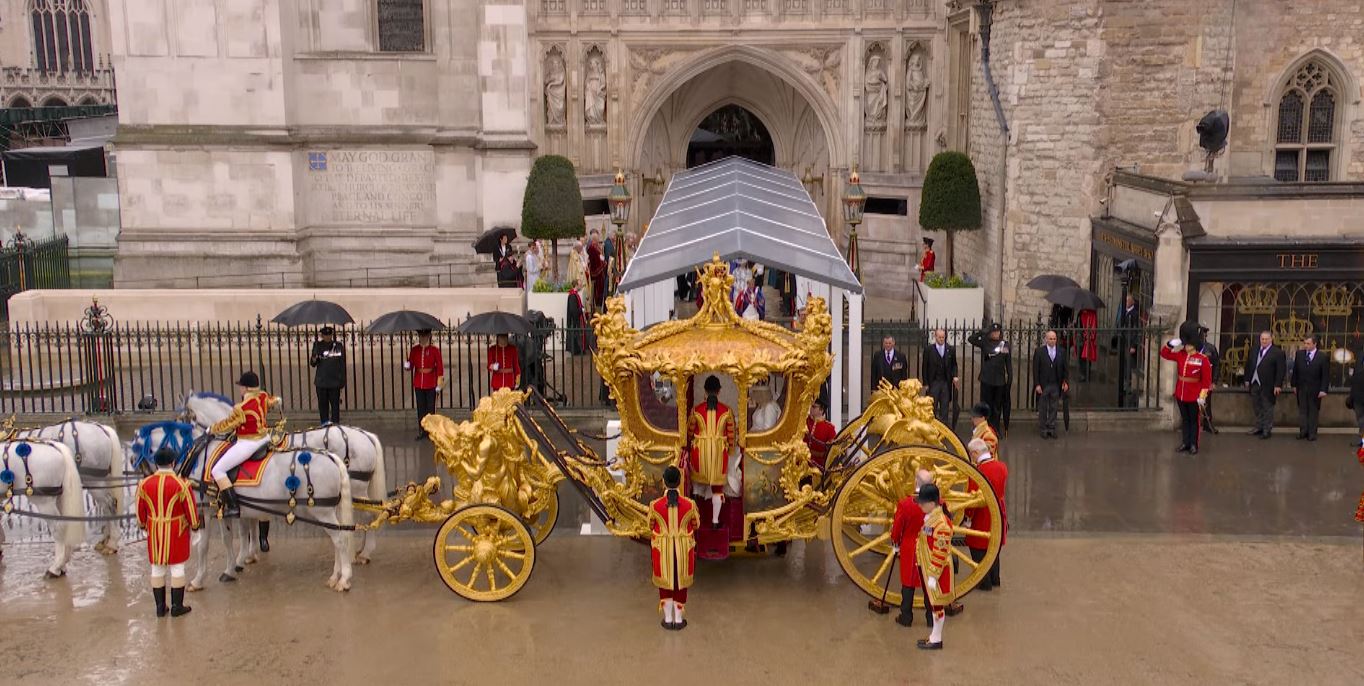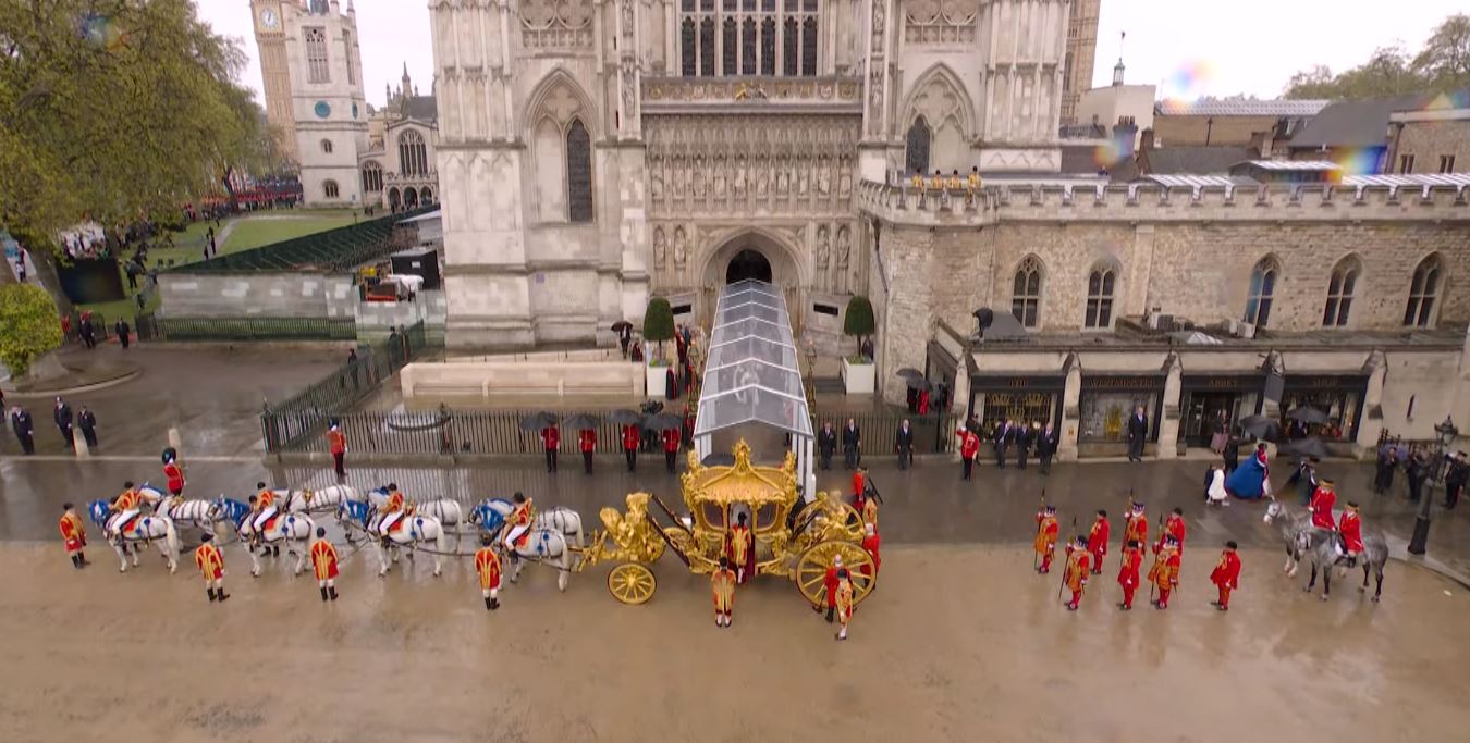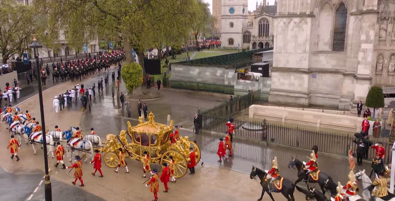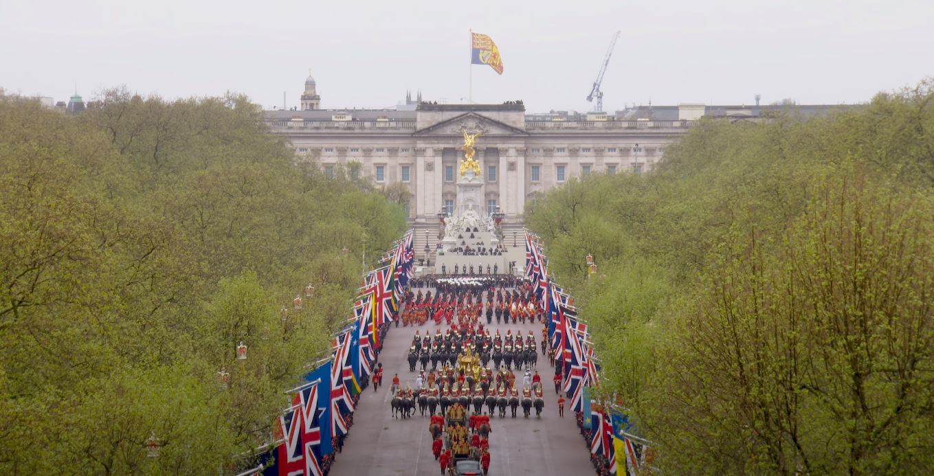 Regele Charles al III-lea și Regina Consoartă au pornit de la Palatul Buckingham spre Abația Westminster Abbey, acolo unde au fost încoronați pe rând, mai întâi Regele Charles, iar apoi Regina Consoartă. La finalul Ceremoniei de Încoronare, Regele și Regina, dar și familia regală s-au întors la Palatul Buckingham unde au urmat Salutul Regal al militarilor britanici pentru Rege și salutul de la balconul Palatului Buckingham, dar și show-ul aviatic.