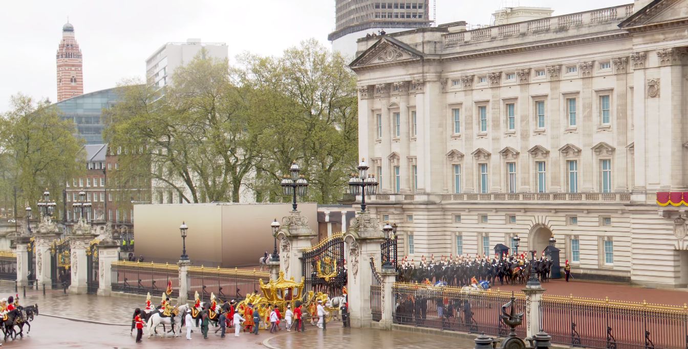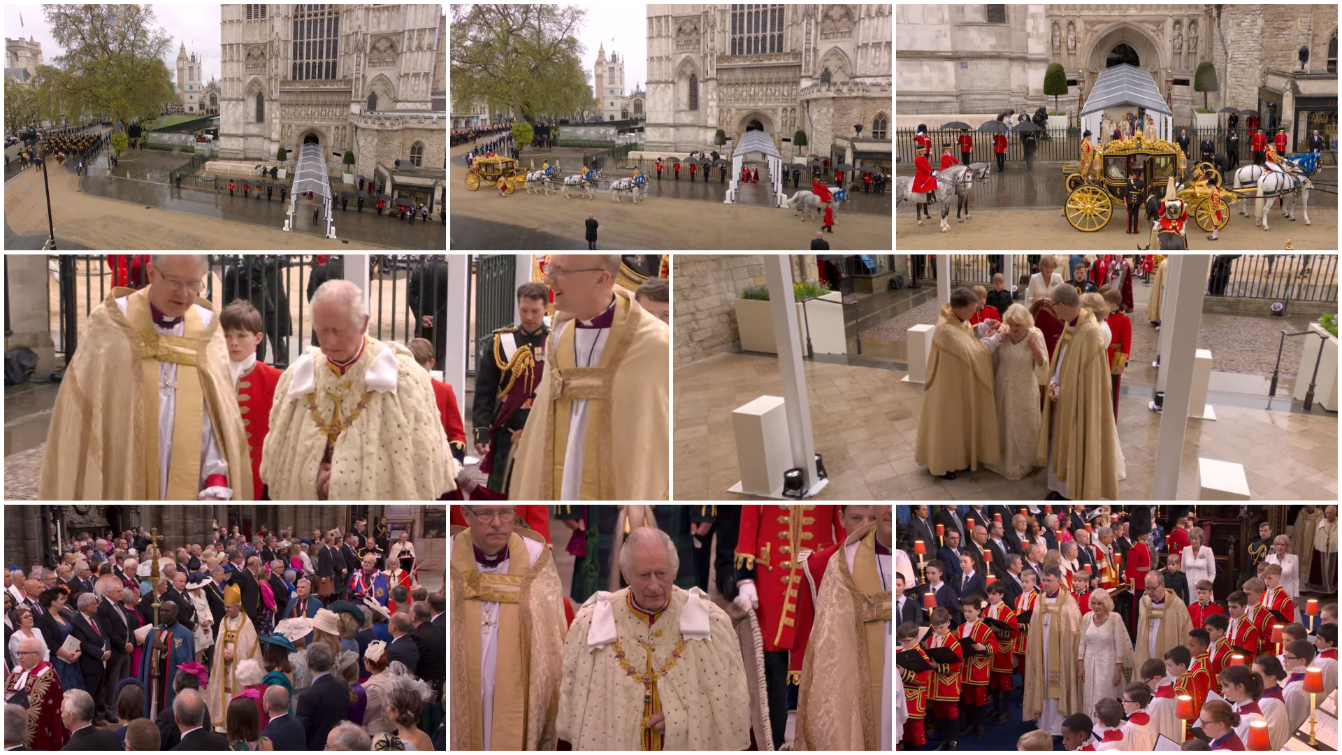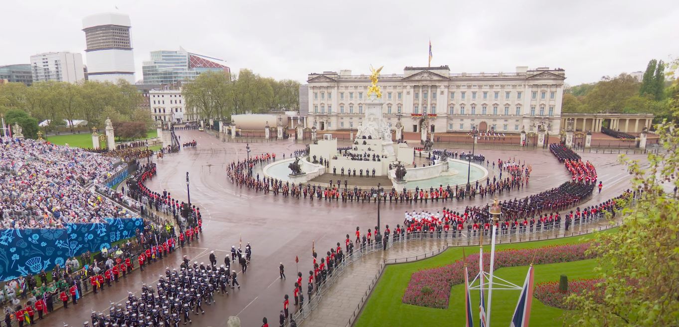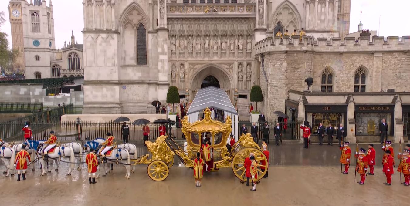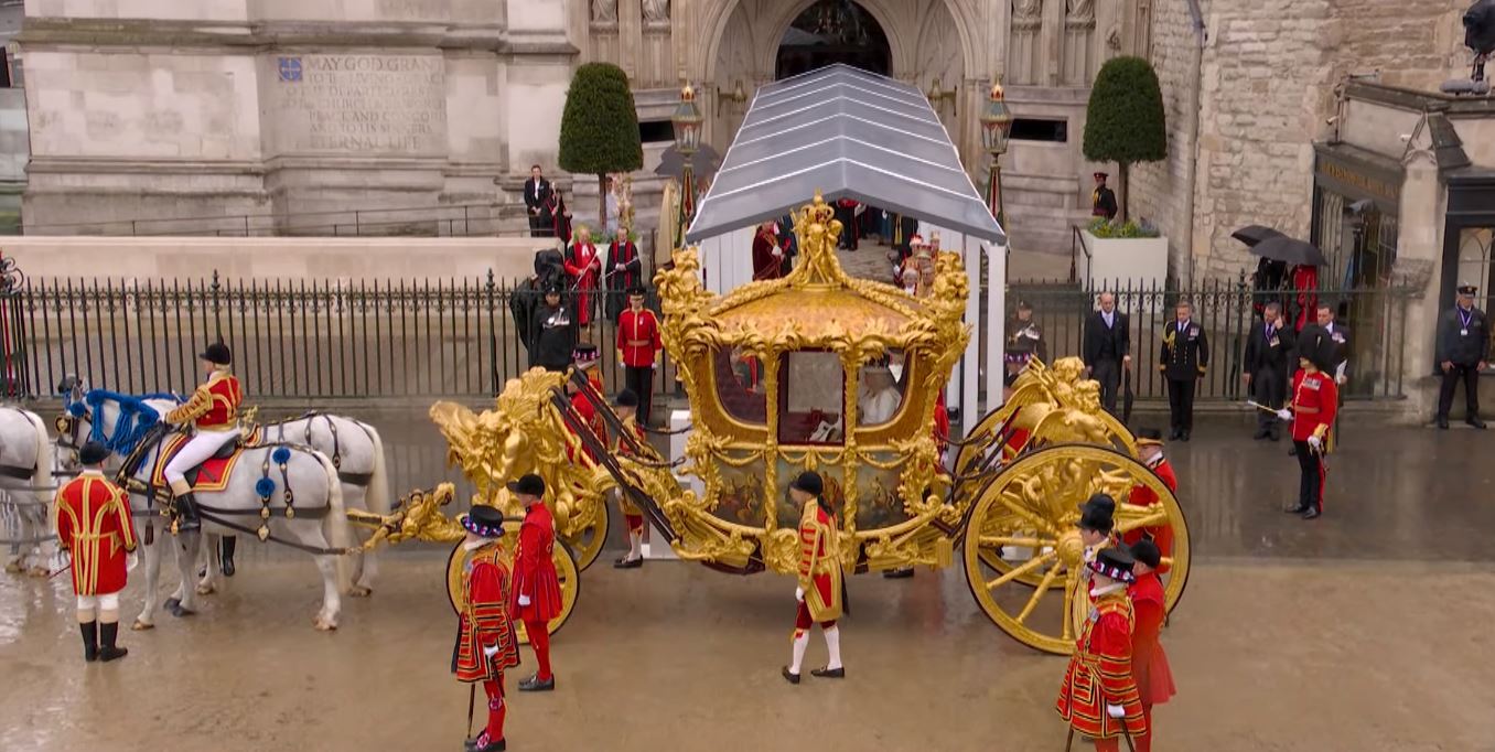 Regele Charles al III-lea și Regina Consoartă au pornit de la Palatul Buckingham spre Abația Westminster Abbey, acolo unde au fost încoronați pe rând, mai întâi Regele Charles, iar apoi Regina Consoartă. La finalul Ceremoniei de Încoronare, Regele și Regina, dar și familia regală s-au întors la Palatul Buckingham unde au urmat Salutul Regal al militarilor britanici pentru Rege și salutul de la balconul Palatului Buckingham, dar și show-ul aviatic.