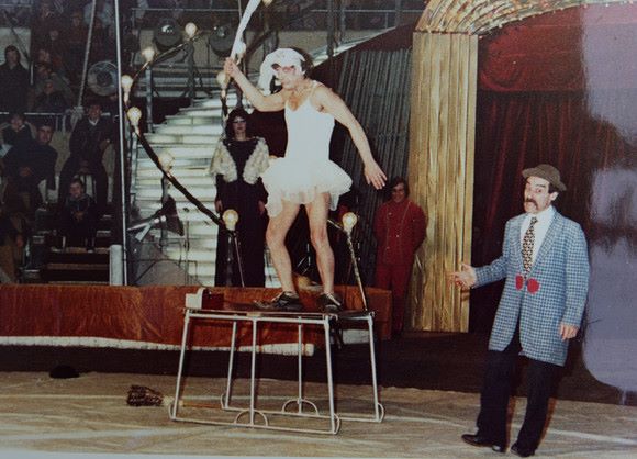 A debutat la 7 ani, într-un spectacol în care executa numere de acrobaţie, contorsionism şi diverse giumbuşlucuri.