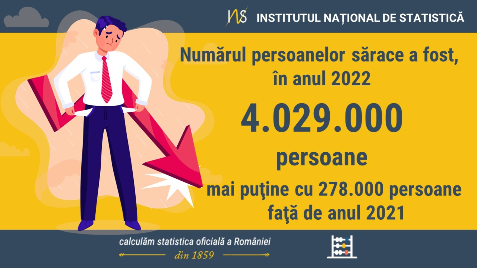 A crescut numărul românilor afectați de sărăcie. Peste 4 milioane de români nu își permit un trai decent. Adică peste 20% din populația țării, arată datele publicate azi de Institutul Naţional de Statistică. Tinerii de până în 24 de ani sunt cei mai săraci români.