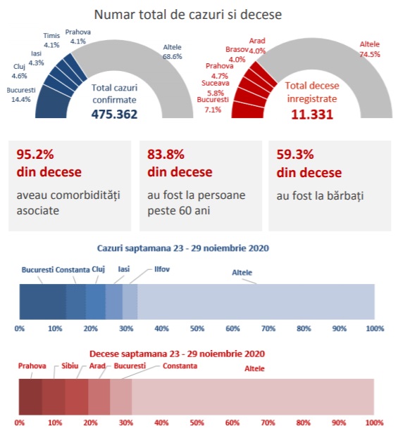 De asemenea, raportul arată că 83,8% din totalul deceselor au fost la persoane peste 60 de ani, iar 59.3% din decese au fost la bărbați.