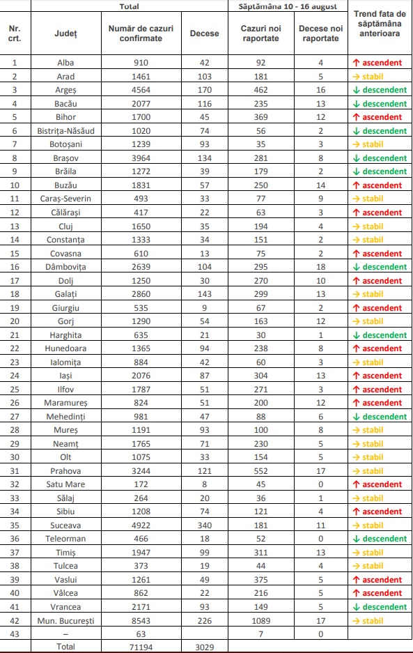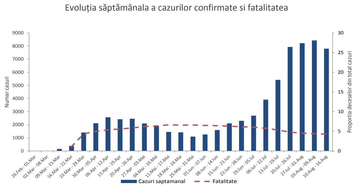 Experţii Institutului Național de Sănătate Publică (INSP) au prezentat raportul legat de evoluţia cazurilor de COVID-19 în săptămâna 10-16 august.