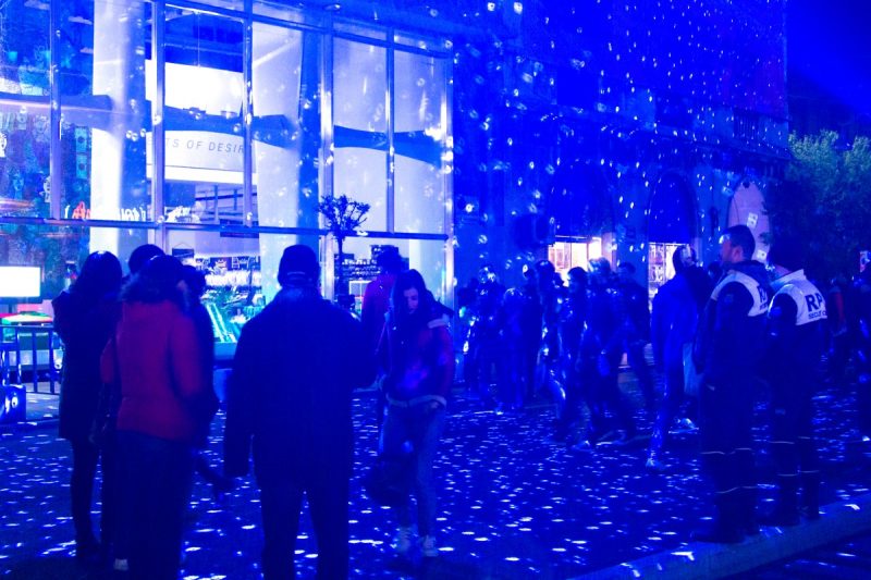 În fiecare zi de festival, de la ora 20:30 la 23:00, Calea Victoriei devine pietonală între Muzeul Național de Artă al României și Splaiul Independenței, unde peste 20 de instalații, proiecții și sesiuni de video mapping transformă zona într-un gigant spațiu expozițional.