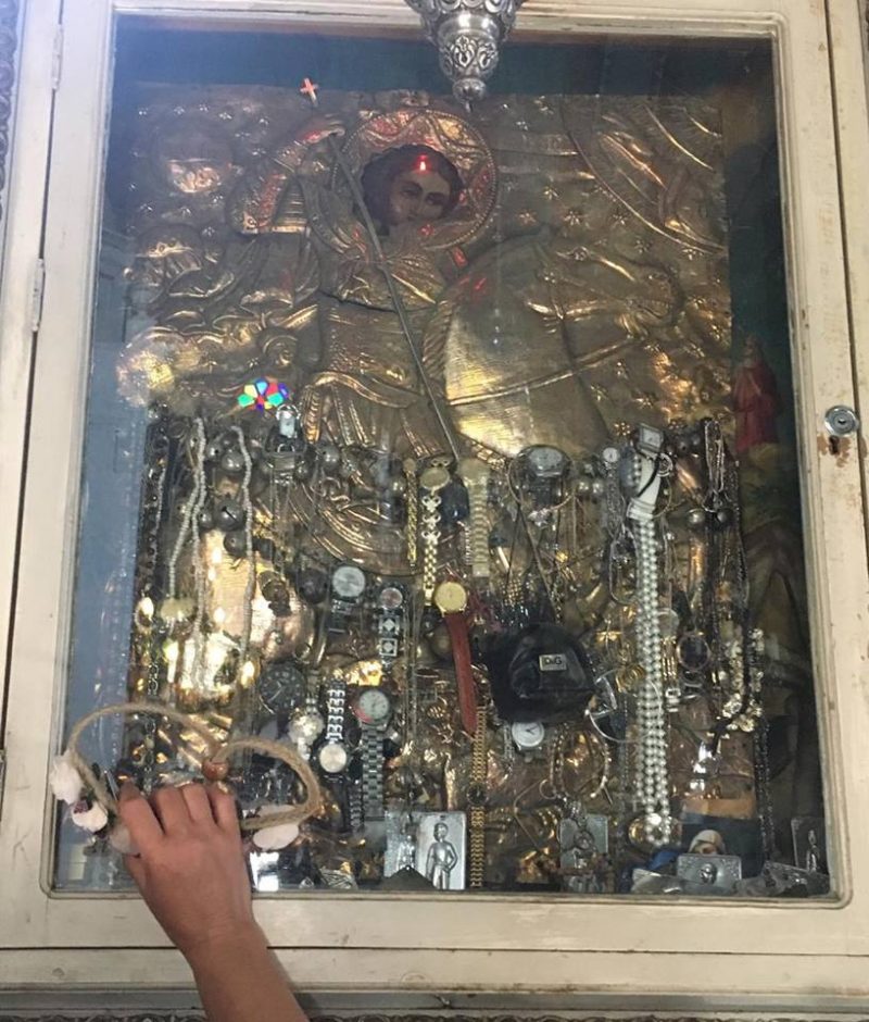 Cei cărora li s-au îndeplinit dorinţele pe care şi le-au pus rugându-se la acestă icoană, vin să lase drept ofrandă diferite obiecte: ceasuri, brăţări, cercei etc.