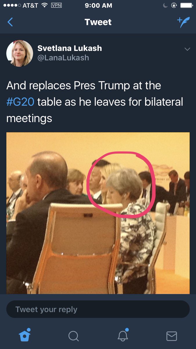 Președintele american Donald Trump a lipsit de la o sesiune de lucru a summitului G-20 care are loc în orașul german Hamburg (nord). În locul lui a stat fiica sa Ivanka, la masa discuțiilor liderilor. Ea are funcție doar de consilier. Prima care a semnalat prezența Ivankăi a fost Svetlana Lukaș, consilier principal al președintelui … Continue reading Ivanka Trump și-a înlocuit tatăl la masa discuțiilor cu liderii lumii