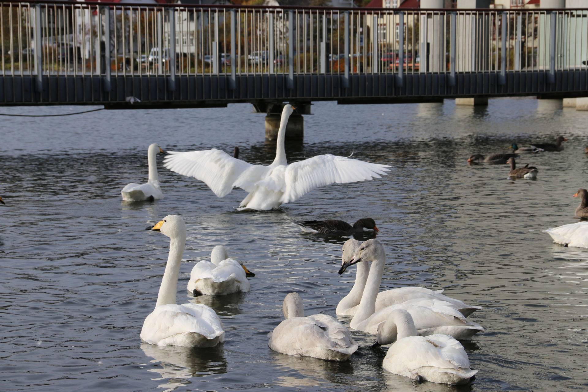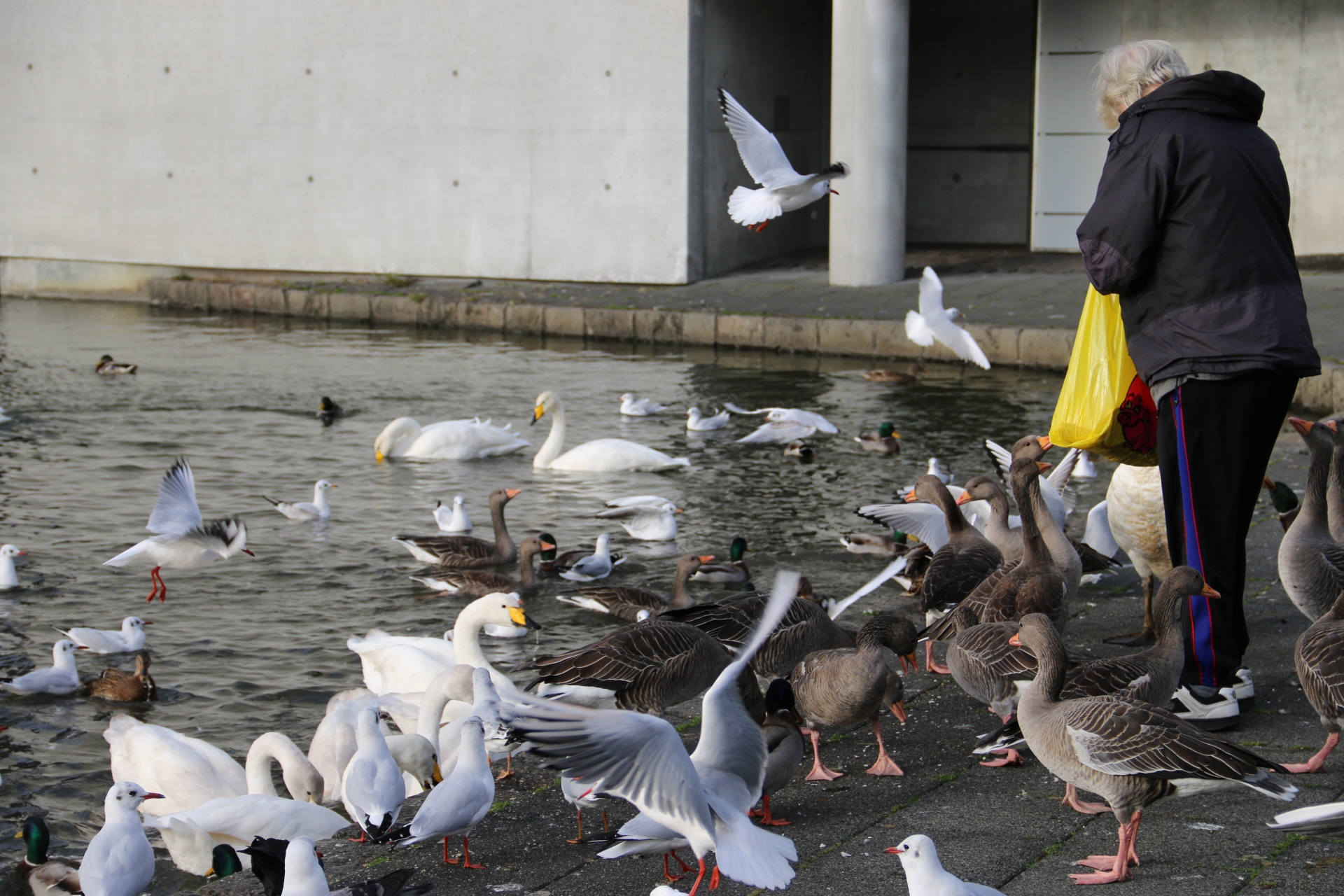 Luați în buzunar și două felii de pâine și mergeți lângă primărie la lacul unde sunt o mulțime de păsări prietenoase.