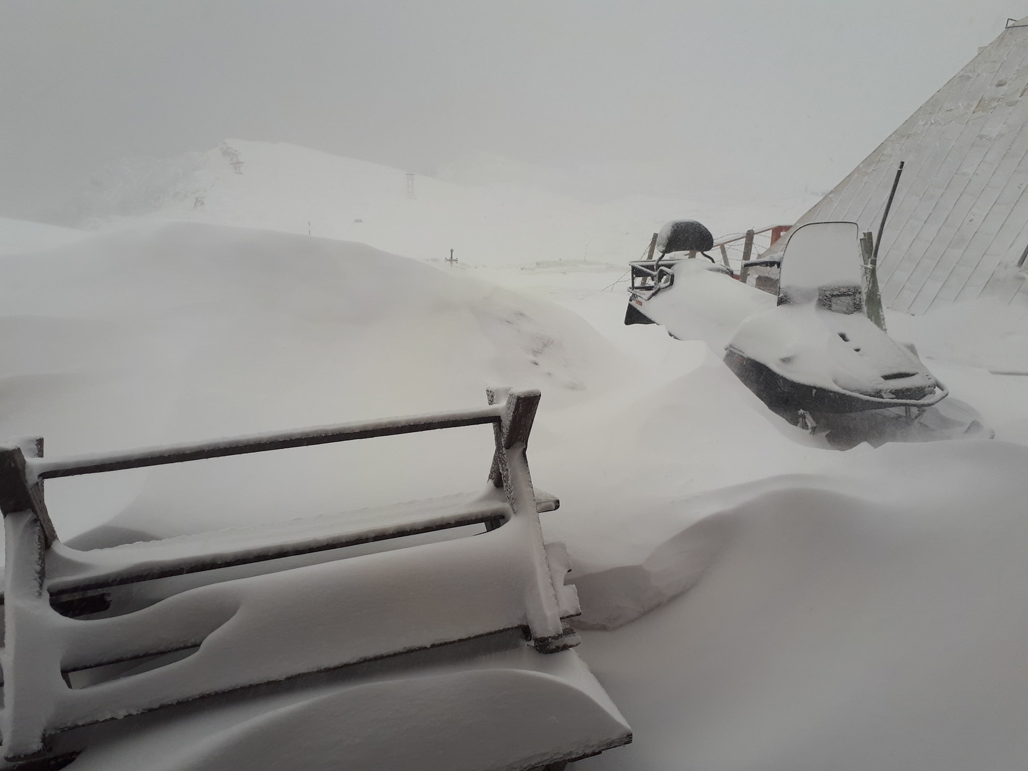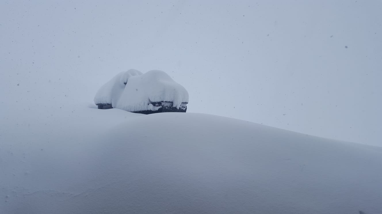 Iarna nu se lasă dusă de la munte. Pe Platoul Bucegilor stratul de zăpadă depășește un metru după ce noaptea treacută a nins viscolit.