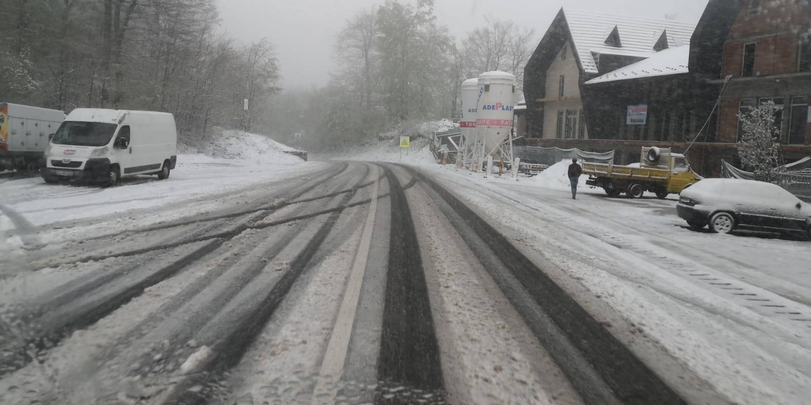 Marţi ninge slab şi în Pasul Gutâi, între km 20 si km 32. De asemenea, ninge în Pasul Prislop, în Maramureş, între km 156 si km 180.