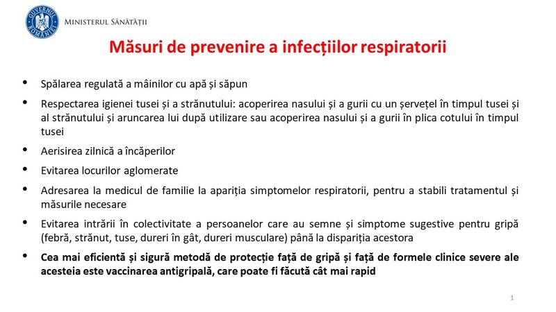 Citește și: Ministerul Sănătății: Stare de alertă epidemiologică, pentru limitarea răspândirii infecțiilor respiratorii, inclusiv gripa. Măsuri de siguranță și prevenție | FOTO