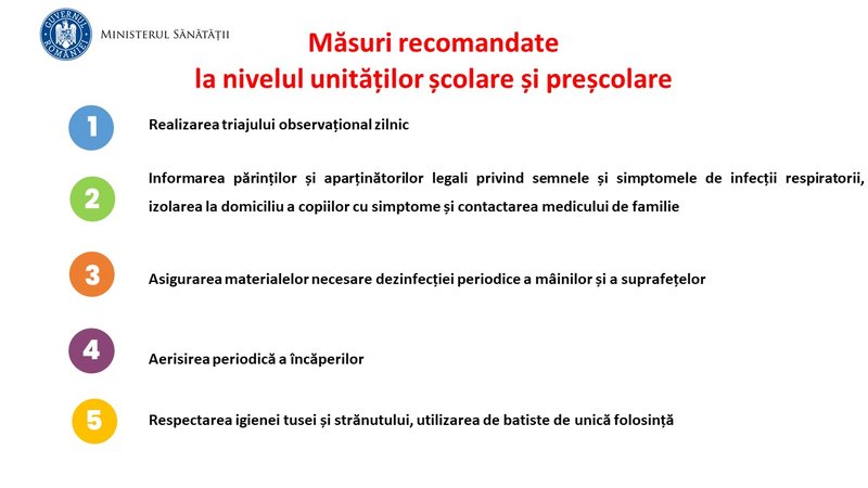 Măsuri recomandate la nivelul unităților școlare și preșcolare