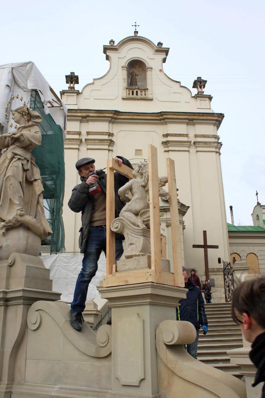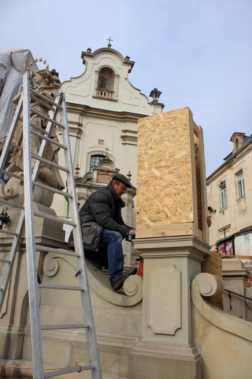 Localnicii din Liov, Ucraina, protejează statuile din oraș, de un eventual atac al rușilor | FOTO