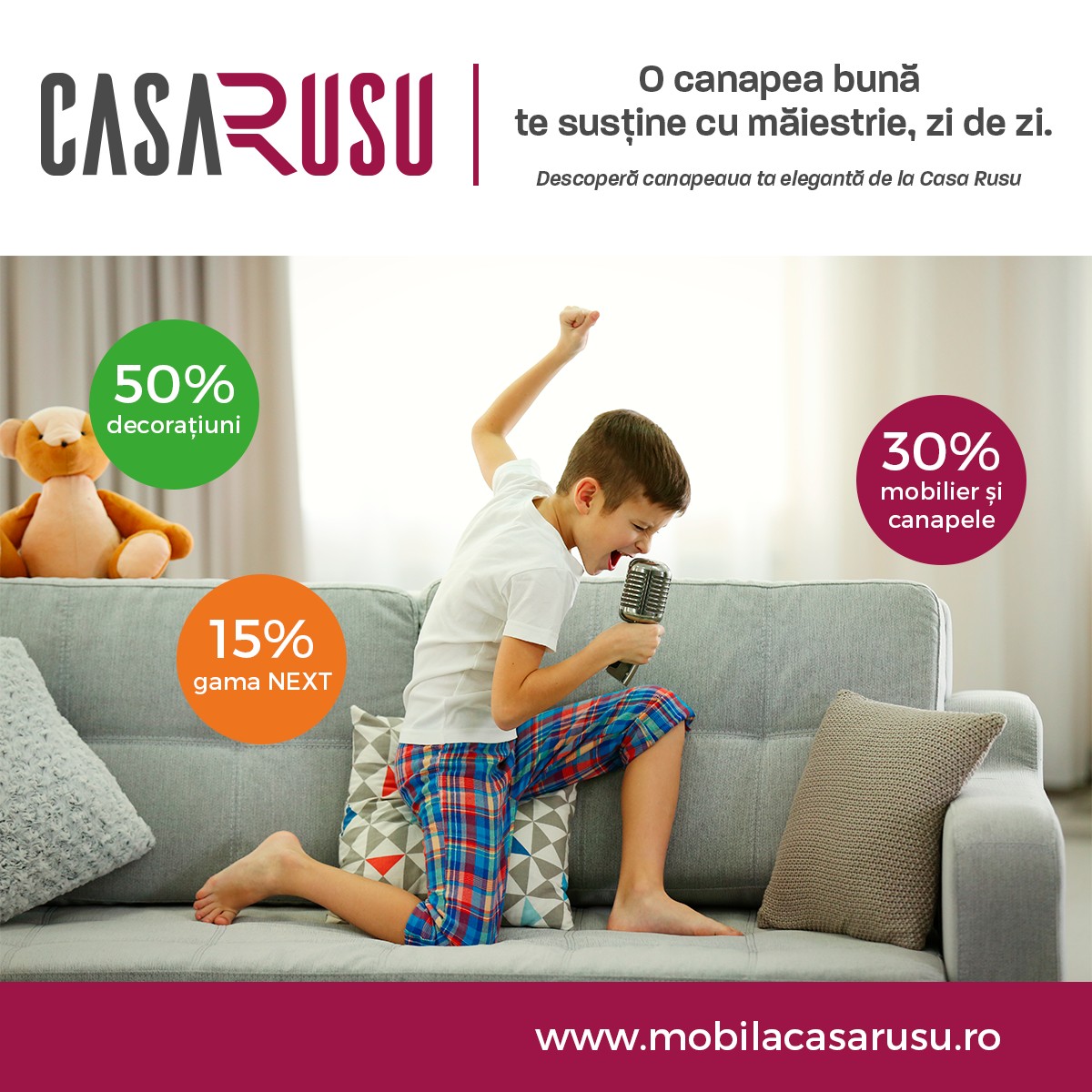 Tot astfel, Casa Rusu se gândește tot timpul la cele de preț pentru tine, așa că ai acum până la 1 septembrie reduceri de 30% la TOATE colecțiile de mobilier și canapele, 10% la comenzi de tapițerie, 15% la gama de produse smart NEXT, și până la 50% la o mulțime de decorațiuni.
