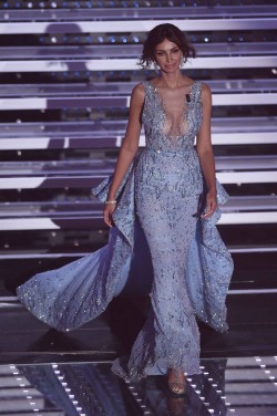 Rochiile purtate de Mădălina Ghenea în prima seară a festivalului au fost realizate de celebra creatoare de modă italiancă Alberta Ferretti.